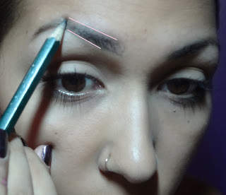 *Faça um traço com o lápis do começo da sobrancelha até o começo da subida dela.